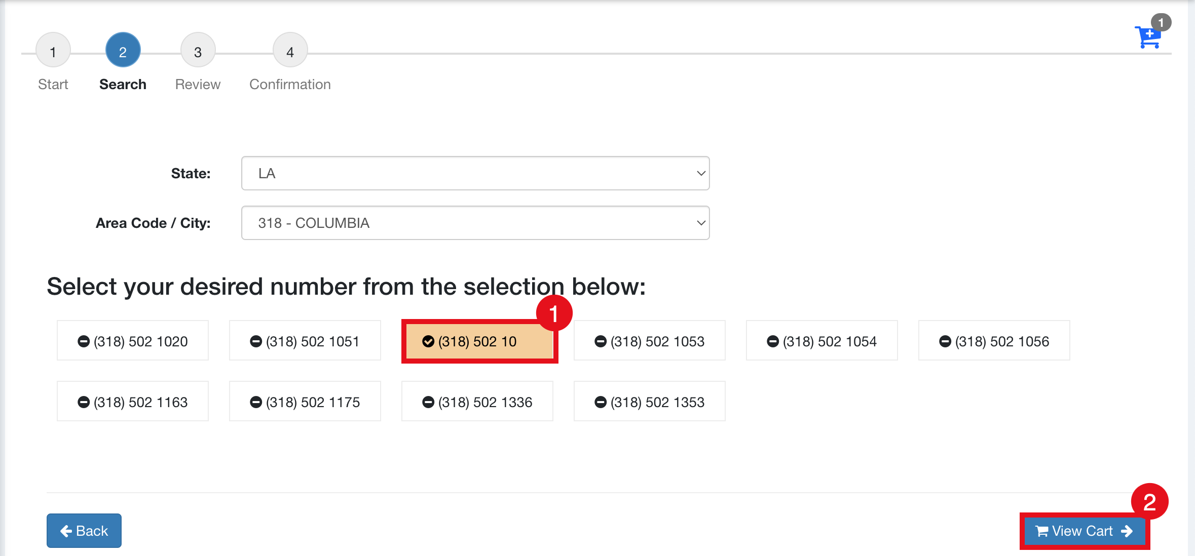 - Once you've chosen your new number, click on "View Cart" to proceed to the next step.