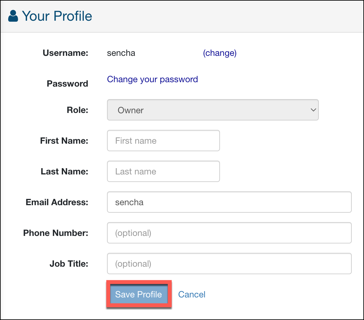 - Here you can change your username or password. The options to update each are clearly marked beside the respective fields.